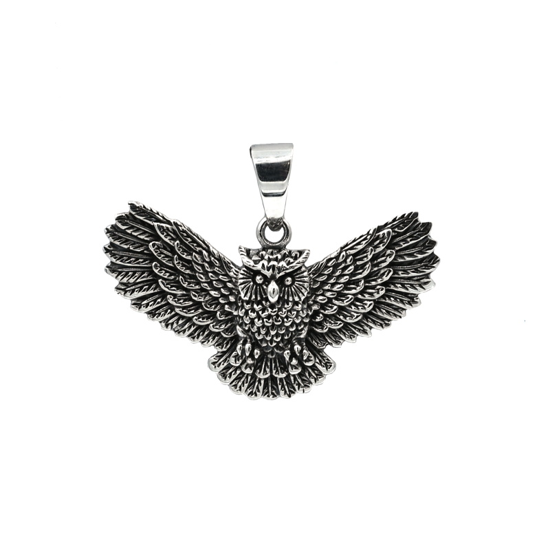 Stříbrný přívěsek sova, velmi hezky propracované detaily.