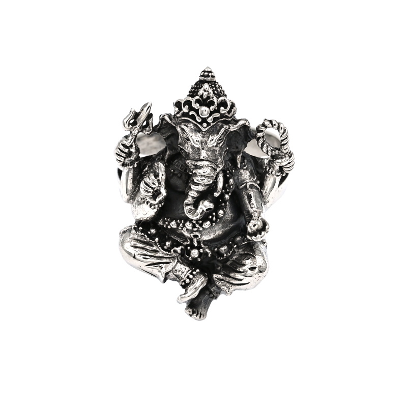 Velký stříbrný prsten Ganéša. Nádherně propracované detaily